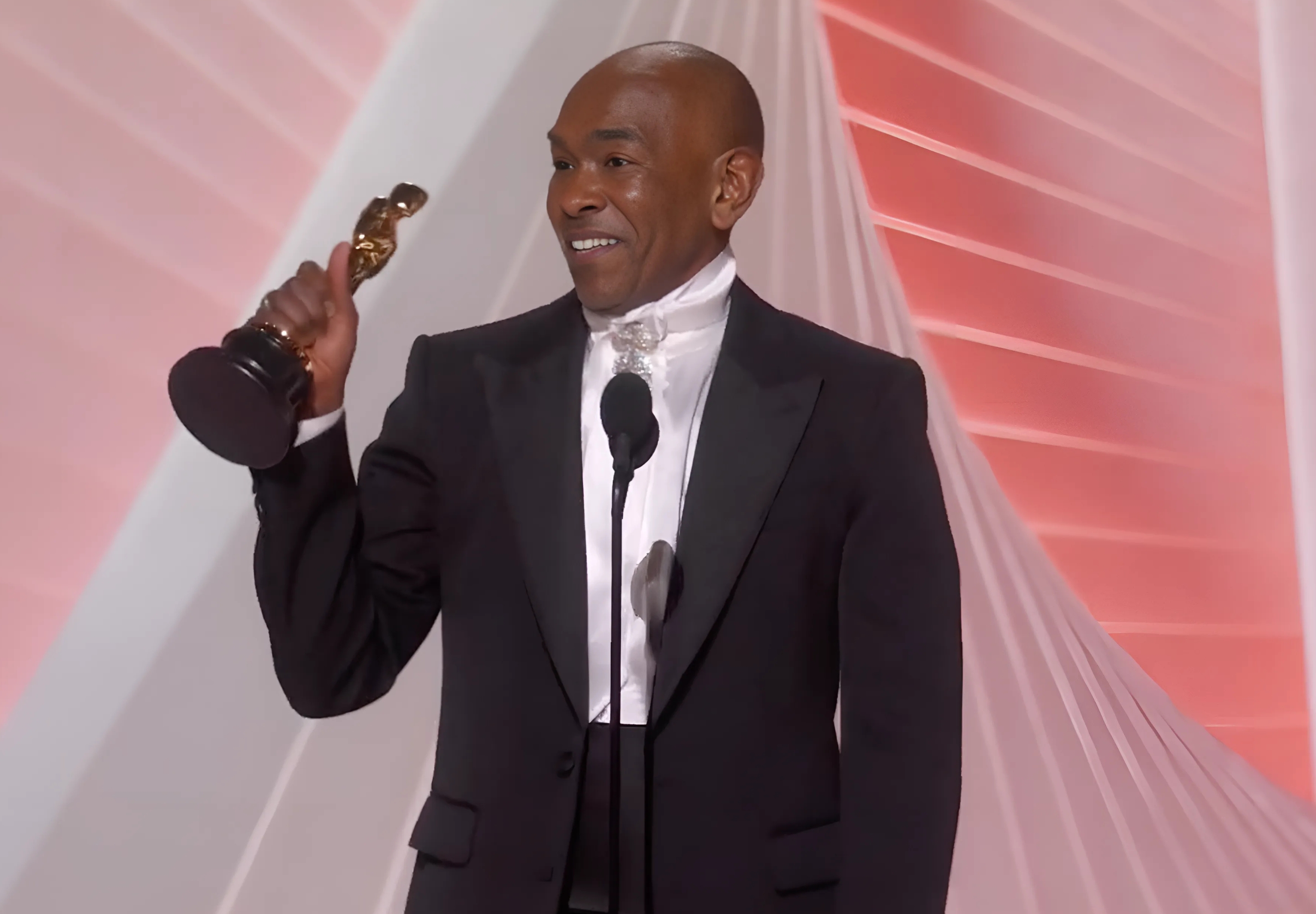 Another historic win was that of Wicked’s costume designer Paul Tazewell who made history as the first Black man to receive an Oscar for Costume Design. “I’m so proud of this,” he said to a standing ovation after acknowledging his historic win, with visible support from Wicked stars Cynthia Erivo and Ariana Grande, Sing Sing star and nominee Colman Domingo, and West Side Story star Rachel Zegler. Especially touching was the bit from Bowen Yang coming on stage in his Wicked costume to highlight Tazewell during the presentation of nominees for Costume Design.