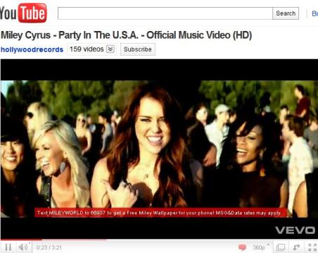 Mylie Cyrus, Party in the USA, http://www.youtube.com/watch?v=M11SvDtPBhA