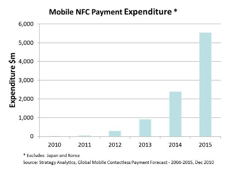 Third, a slew of services will be launched in 2012 enabling consumers to make small value payments by tapping their NFC (Near Field Communication) enabled mobile phone against an NFC retail point of sale. 2012 will be a critical year for driving NFC handset sales and encouraging retailers to adopt the technology, although we expect end-user adoption to lag due to inertia.