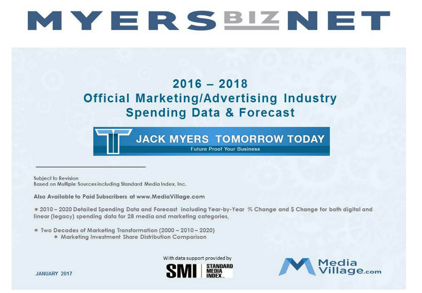 2016-2018 Jack Myers TomorrowToday Official Marketing/Advertising Spending Forecast