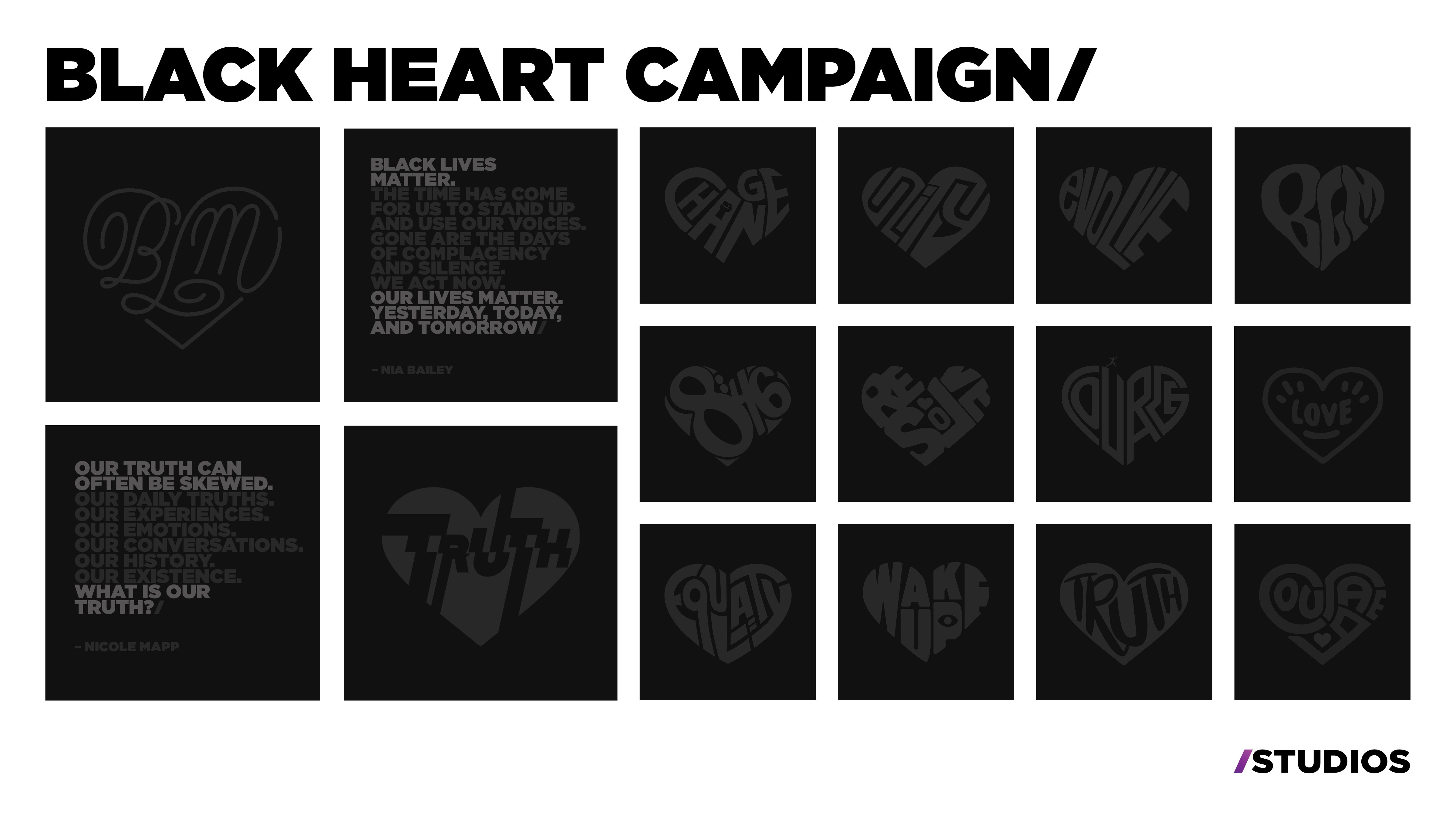 It may seem rather quiet at first glance, but its simplicity was purposeful. The "Black Heart" represents something way beyond the narrative that a lot of us want to see and live by. I think most importantly, it represents what we all want at the end of the day – which is simply love in its purest form. A heart full of love, compassion, humility, and peace. This creative, alongside the many other voices speaking out across the country, communicates something that lives beyond #BlackoutTuesday, and in many ways resonates differently with its viewer, based on their previous experiences, whatever they may be.