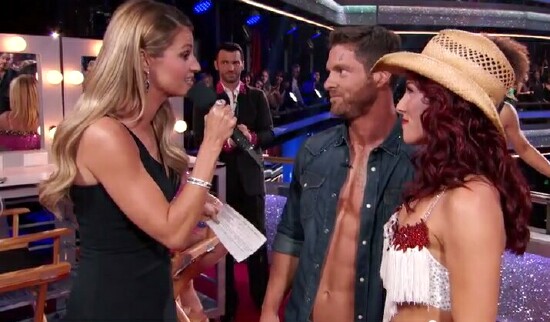 What a moment of spontaneous and unexpected emotion – one that likely took viewers at home as much by surprise as it did Galloway. Television moves people in many ways much of the time – as do so many of those videos on YouTube and elsewhere that capture moments of heart-rending happiness and compassion – but those moments rarely feel as true as this one. I think it was something about the way Noah held onto Jamie that made it so special. (His dance with Burgess was pretty impressive, too. The two are pictured below being interviewed by "Dancing" co-host Erin Andrews just before Boyd appeared.)