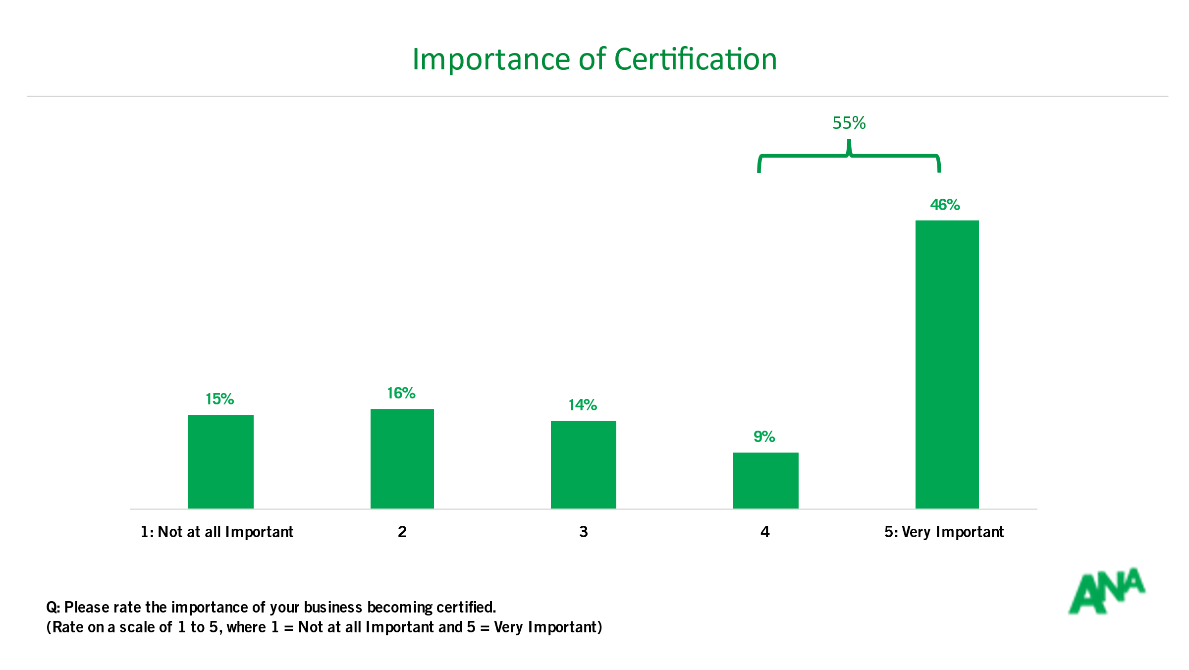 When we asked suppliers to, "Please rate the importance of your business becoming certified," 46 percent rated that as very important. Quite a statement!