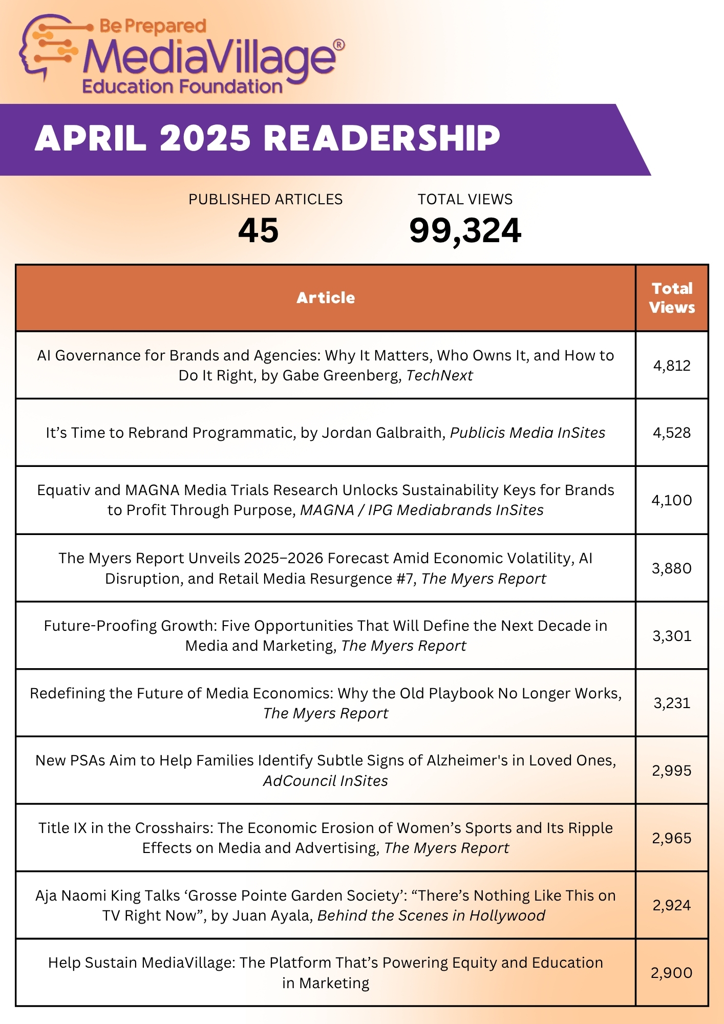 From AI and lessons in branding, to insightful thought leadership and initiatives from Publicis Media, MAGNA / IPG Mediabrands, the AdCouncil and more, April 2025 saw a wide array of key topics from our members, contributors and thought leaders.