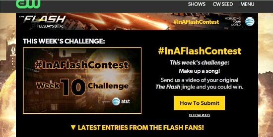 Twelve minutes into this week’s episode, after the first commercial pod of the hour had played out and mere moments after all of the credits for the show’s many writers and producers had been clearly displayed, a rectangle appeared in the bottom left corner. Changing graphics in said rectangle put forth the following information: 1) Take the “In a Flash” Weekly Challenge; 2) Using [the hashtag] #inaflashcontest; 3) Wednesdays at CWTV.com/InaFlash; 4) Featuring a New Fan Each Week!