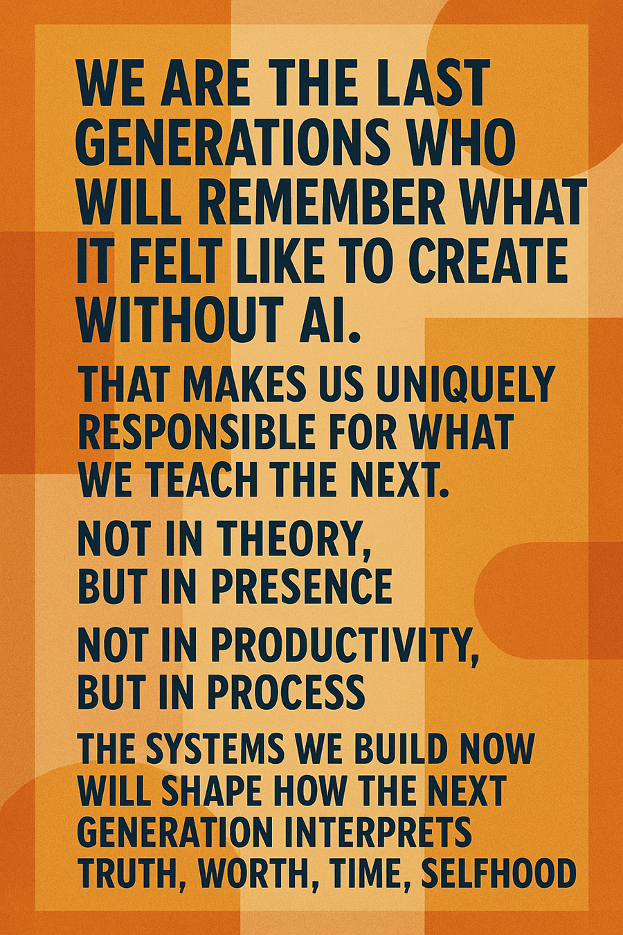 Our memory of creation before AI is not nostalgia -- it is sacred responsibility.