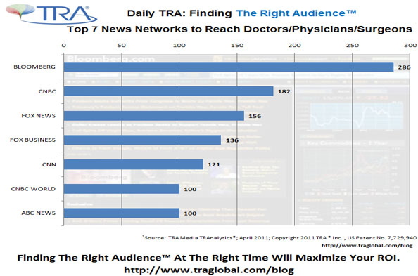 TRA’s True Target Index Report shows that Bloomberg TV already has the highest composition of Doctors in its audience among relative to other News networks. This kind of insight can only come from TRA’s Media TRAnalytics®. Armed with these insights, Bloomberg can demonstrate to advertisers how they can find The Right Audience™ within their programming.