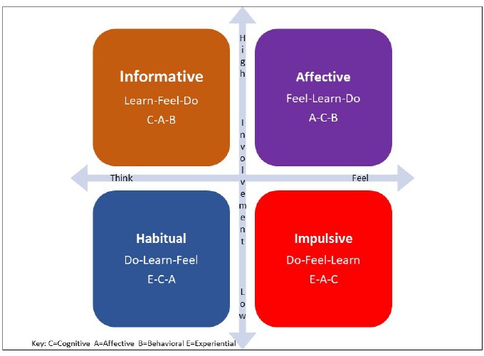 When I started my career, I got a little green book from an anonymous author called How Advertising Works. I learned it was written by Richard Vaughn in our London office and centered around what became the FCB/Vaughn Grid. One uses it to map a communication approach for a category/brand via two dynamics: involvement and mental approach (logic vs emotion). Right/left brain theory was just getting traction at the time and has worked well for products on a sustained basis.