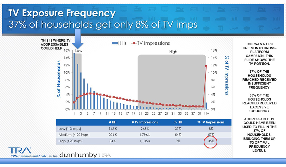 We all know what happened instead. In today’s digital-first world, TV is no longer the base in the buy. And what happened to frequency capping? Everyone does it for their own platform, but a normal buy of 30+ platforms still has tons of excess and insufficient frequency. Let’s say you tell each platform to cap it at 6 frequency for the campaign: with 30+ platforms, some folks will still be receiving the same ad 180 times in one flight.