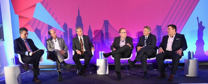 (The Video Everywhere program at Advertising Week New York. Pictured left to right: Jay Sears; Brendan Condon; Scott Stansfield of Centriply; Scott Wells of Clear Channel Outdoor; John Partilla of Screenvision, and Michael Strober of Turner Broadcasting. Click on the links to read Jay’s interviews with them.)