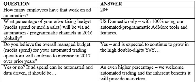 SEARS: With regards to advertising automation impacting “video everywhere,” what are the three biggest trends you expect to impact companies in 2016 and 2017?