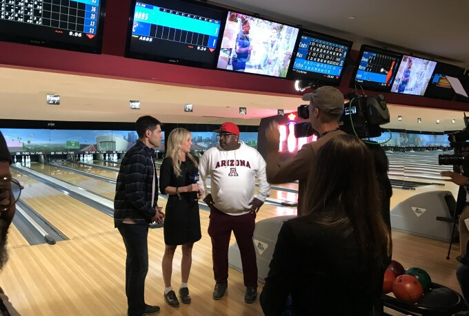 Los Angeles, CA -- The publicity teams at CBS on Monday did something that was as inventive as it was effective. During the east coast telecast of a new episode of the sophomore sitcom The Neighborhood, which was set largely in a bowling alley, they had the cast of the show assemble at Pinz, one of the best-known bowling alleys in Los Angeles, along with the press, to bowl and send out tweets (and other social messages) about it. Using the official hashtag #TheNeighborhood and/or the handle @TheNeighborhood, everyone was encouraged to engage with fans in the east and encourage them to tune into the show. They were also encouraged to tweet again three hours later when the show was telecast on the west coast.