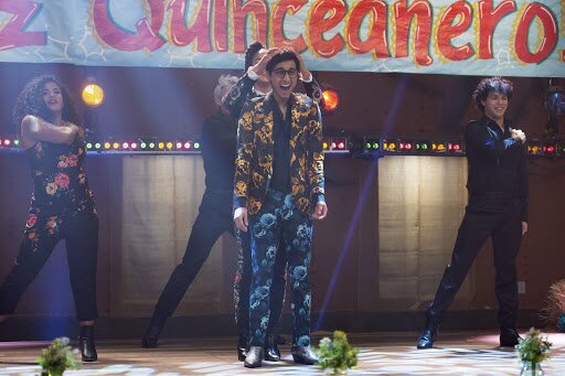 "The Quinceñearo" takes a pause from this season's main storyline of the East High students in rehearsals for Beauty and the Beast to compete with the larger budget productions at their rival school North High. Instead, it shifts gears to our favorite little choreographer Carlos, played by the adorable Frankie Rodriguez (pictured at top left, with Joe Serafini), who is eager to commemorate his 15th birthday but has no plans to celebrate. Enter his boyfriend Seb. (#SebLos. If you know, you know!) He gathers all their friends to put together an impromptu Quinceñearo for Carlos. Typically, a Quinceñeara is a traditional 15th birthday celebration for young Latinas to celebrate going into young adulthood, much like a Bat Mitzvah.