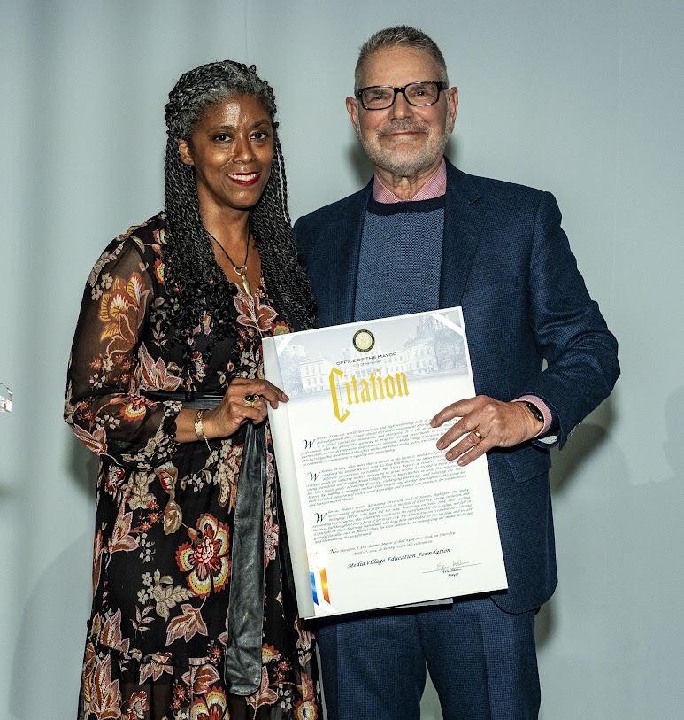 The induction ceremony featured comments by Alia Jones-Harvey (pictured above with Jack Myers) , New York City Associate Commissioner, Workforce Development & Educational Initiatives, presenting a Citation to MediaVillage Foundation on behalf of Mayor Eric Adams. Reading from the Citation, Jones-Harvey commented, "Today's event, Advancing Diversity Hall of Honors, highlights the many achievements of standout professionals in the field of diversity, equity, inclusion, and belonging (DEIB) who have led the way. This celebration emphasizes the significance of these values, not just in business, but throughout every facet of life in our city. My Administration is committed to shining a spotlight on those deserving individuals who have been overlooked for far too long, and we are grateful for allies such as MediaVillage, for their dedication to reenergizing our media landscape and illuminating the way forward."