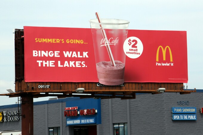 Let's take a look at some other buzz-worthy campaigns from August, before we close the chapter on summer 2016. Out-of-Home standouts included a Mazda conditional ad campaign that rotated its messaging dependent on time of day to be more in-tune to consumer drive-time; a flashing ad that intuitively reminded people that grabbing a Jimmy John's sandwich is "Freaky Fast" just like the locomotive the ad is displayed on, and TXU Energy's fluffed-out 3D pillow (over 14 feet tall), making everyone who saw it yearn for a better night's sleep. Ten images are presented below; one -- a billboard for the new FX series Atlanta -- is pictured at top.
