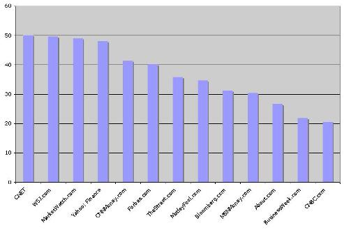 • POWER SCORES: Among the sites measured in our 2006 survey, CNET, WSJ.com Marketwatch.com, TheStreet.com and Bloomberg.com had significant increases in Overall Performance Power Score in 2007*. Forbes.com and BusinessWeek.com declined year over year.