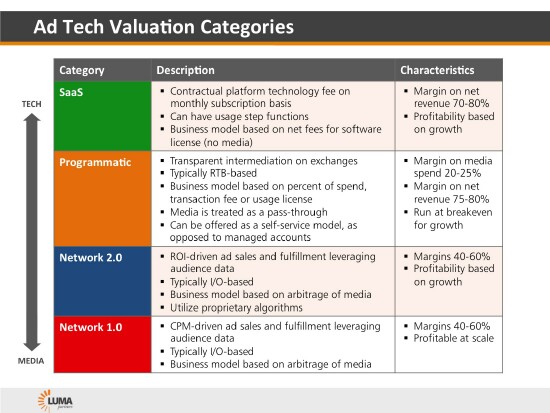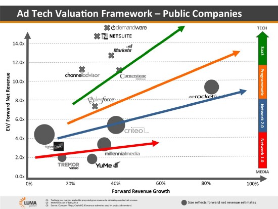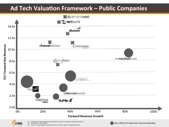 Given that at least a dozen of these companies are contemplating IPOs in 2014 and 2015, we want to share a framework for how we believe the market values this sector. This paradigm is not a prescriptive scientific formula, but rather a suggested framework to understand the way public markets look at investments in Ad Tech. We would also point out that this framework applies to scaled companies capable of accessing the public markets and does not necessarily translate to smaller players.