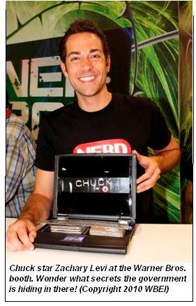 Some media entities really stood out more than others amid the carefully planned chaos, but none more than Warner Bros., which once again all but claimed the Con as its own. Its home base was a huge two-story booth on the floor at which stars from its movies, television series and D.C. Comics properties signed autographs for thousands of thrilled fans. (The signings could be seen dozens of aisles away on jumbo screens positioned high atop the booth.) Marketing and publicity executives at the company really outdid themselves coming up with clever ways to thrill fans at panels for their shows (such as the Barenaked Ladies leading an audience sing-along of their theme song for The Big Bang Theory). In its second year, Warner Bros.' Friday night V.I.P. media party became one of the Con's must-attend events. (More than twice as many people attended this year than last.) Meanwhile, the giant tote bags emblazoned with Warner Bros. franchises that proved so popular in recent years were once again among the most sought after freebies at the Con. Indeed, a number of other companies got into the bag game, as well. (The best was the Doctor Who bag from BBC America.)
