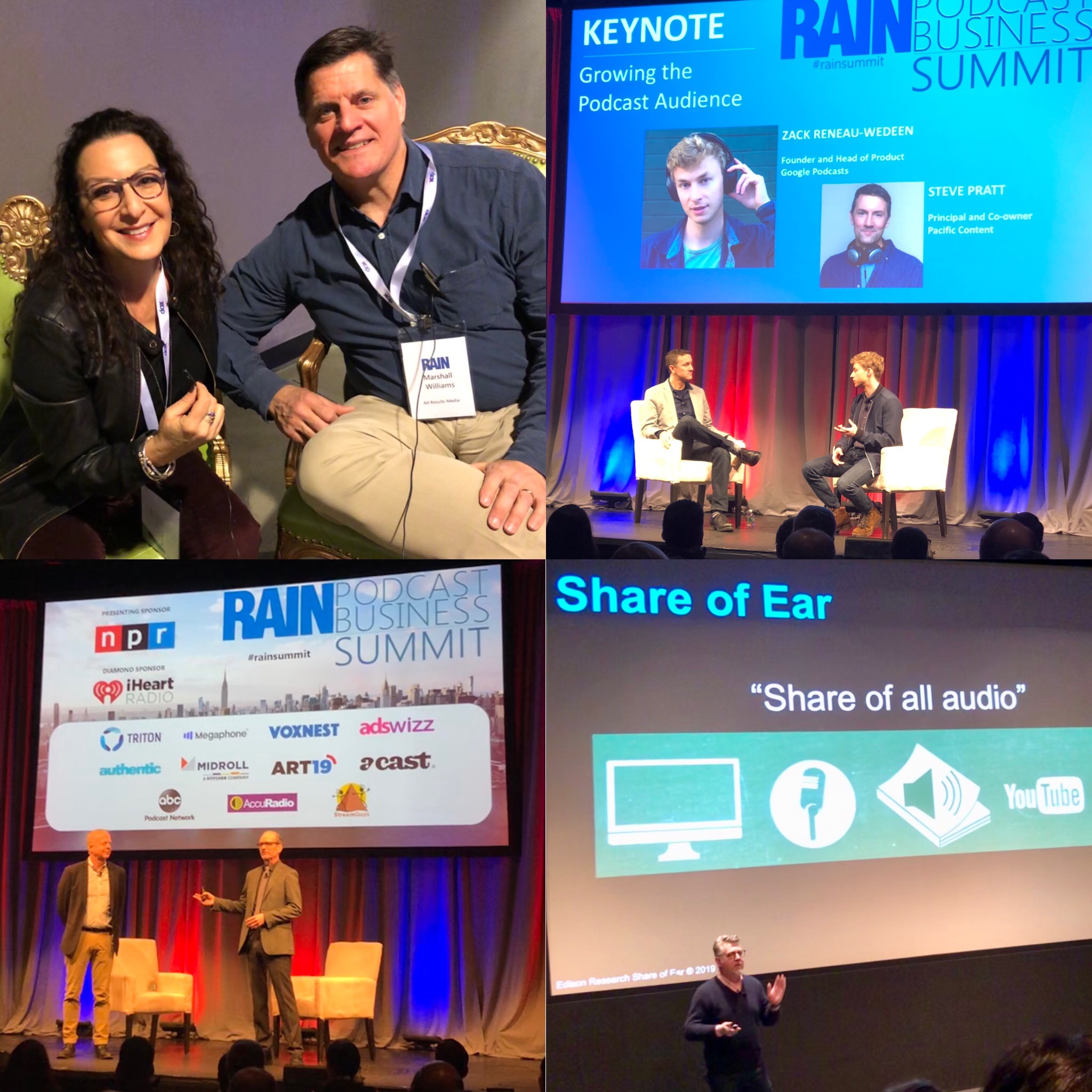 In the much-awaited Part 2 of our episode gathering insights from the podcasting pros, you'll hear from iHeart Podcast Network President Conal Byrne; Google Podcast's Founder and Head of Product, Zack Reneau-Wedeen; On Air Fest and Work x Work founder Scott Newman; PMM CEO David Raphael, and the CEO of Ad Results Media, Marshall Williams (pictured above right). I went from the consortium of seven networks joining up to educate West Coast media cohorts at the Winter Podfrontin L.A. to the On Air Fest and RAIN Summit in New York City seeking expert opinions on the status of the industry and how we're moving podcasting forward. What are your thoughts around subscription-only content? How easy is it to find the best podcasts for sponsors? And how do we grow listenership even more? All in all, the news is good! Per Edison Research and Triton Digital's Infinite Dial report, 51% of the population has now ever listened to a podcast.