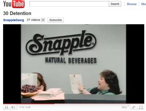 I was reading a blog on www.breakingcopy.com where this ad was compared to a Snapple ad from 1993. (This is particularly fun for me because I actually know Wendy, aka the Snapple Lady J) Here, a boy writes in (remember snail mail?) that Snapple gets him through detention each day.