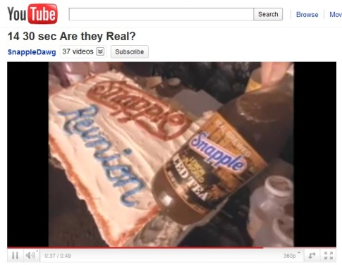 And Wendy did this one too. In the Reunion spot, all of the real people from past Snapple ads show up at the door of a disbeliever, who of course, wrote in, about his disbelief.