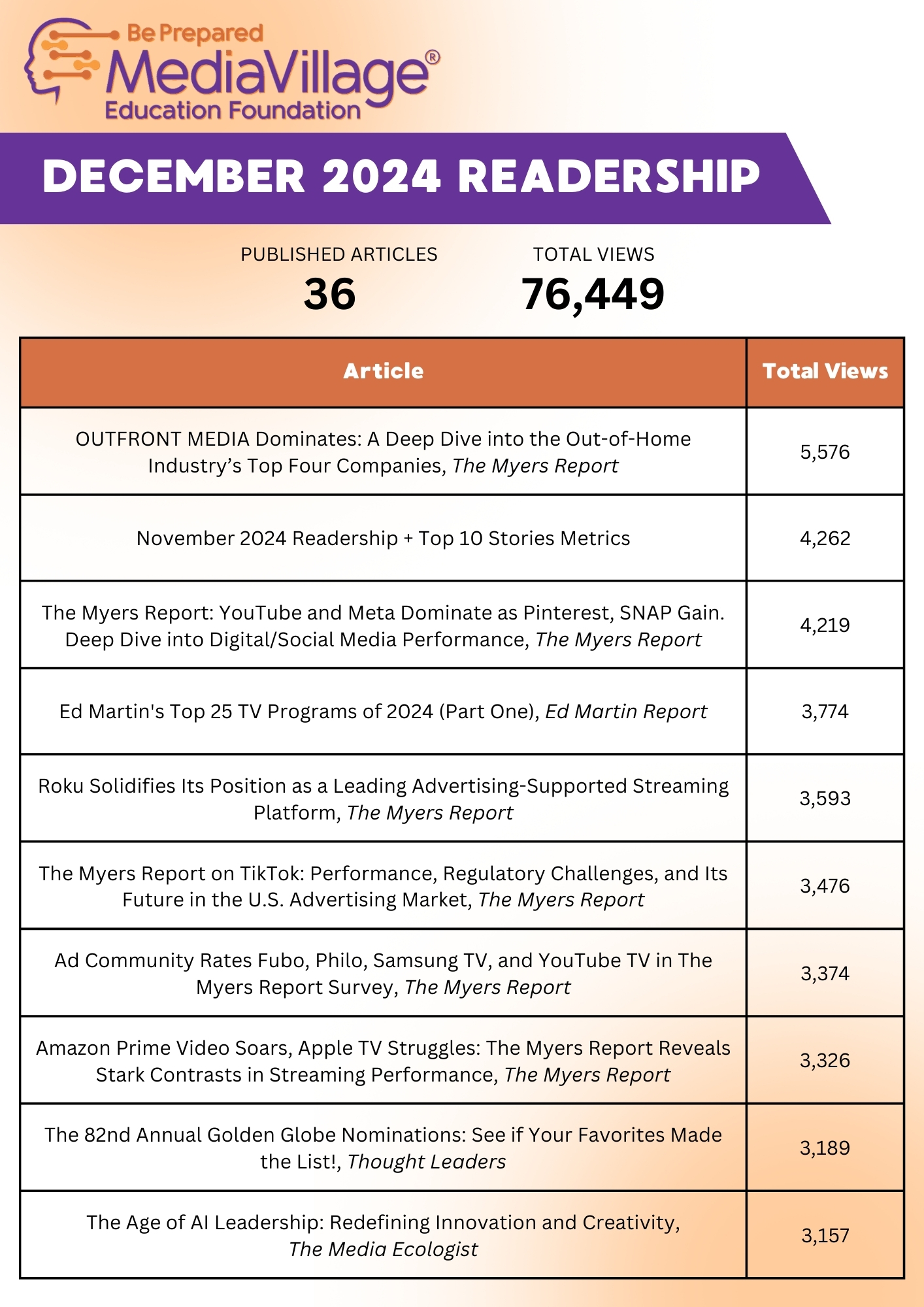 Fun fact: Our Top 10 Stories of November recap made the top 10 list for this month, a first for MediaVillage!