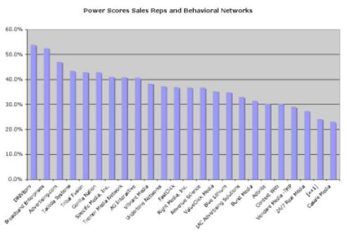 • POWER SCORES: All of the sales rep firms and behavioral networking companies measured in our 2006 survey saw a performance increase in 2007. DRIVEpm's Overall Performance Power Score almost doubled from 28 in 2006 to 54 in 2007. Advertising.com and Tribal Fusion also saw significant increases year over year.