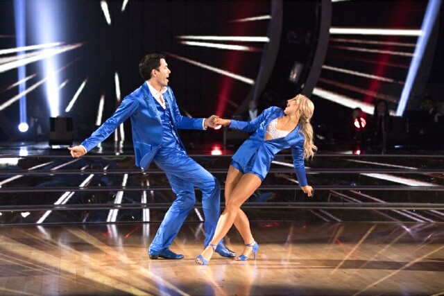 Kicking off the festivities with the first of their dances were Drew Scott and partner Emma Slater (pictured at top), who were challenged to re-do (or “redeem”) their week six Paso Doblé. They received high praise, with judge Len Goodman calling it Scott’s "best dance of the season." Their 36 out of 40 score only solidified that. Frankie Muniz and partner Witney Carson revisited their week one Foxtrot. Muniz was praised for his transformation throughout the competition and scored a solid 38 out of 40. Jordan Fisher and partner Lindsay Arnold revived their week three Charleston, which was vastly improved and was so full of fervor they were awarded a perfect 40 out of 40 score. For Lindsey Stirling and partner Mark Ballas, it was back to week two and the Quickstep. Arnold was praised for her improved posture by the judges, who also awarded her a perfect score.