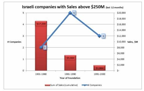Israel has a robust infrastructure for early-stage technology ventures. In fact, $212 million was put to work in early-stage companies last quarter, an increase of 21% from 2009 (Dow Jones Venturesource). In the past, some of those start-ups, like Teva Pharmaceuticals and Amdocs, matured into billion dollar businesses. These days, that scenario is far less likely (see below) to occur. Israeli technology companies with annual revenues of $250 million are now an endangered species. One person working to address that imbalance is Moshe Lichtman, President of Microsoft Israel. "We want Microsoft to be the best school for software engineers as business leaders. They are learning scale and how to lead the next generation of global businesses".