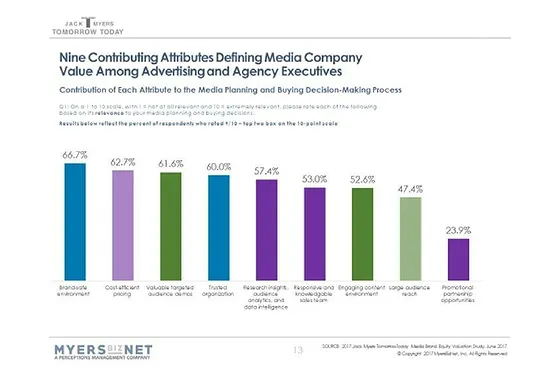 Percentage response to Jack Myers TomorrowToday Marketplace Assessment Surveys