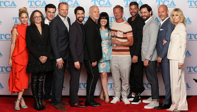 FX’s other award of the night went to The Assassination of Gianni Versace: American Crime Story for Outstanding Achievement in Movies and Miniseries. Executive producer Ryan Murphy (pictured below, sixth from left) and cast members including Darren Criss, Edgar Ramirez, Ricky Martin, Judith Light and Finn Wittrock were on hand to accept the award.