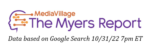 Here are The Myers Report results of a simple Google search as of October 31 at 7:00 p.m. ET. Results are rounded to the nearest thousands and are subject to change, even minute-by-minute based on breaking news coverage (positive and negative). Some results are intuitive and expected, with election eve celebrations projected for Ron Johnson in Wisconsin while gubernatorial candidates Tony Evers and Tim Michels are in a toss-up. Independent Betsy Johnson looks like a winner in Oregon with Catherine Cortez-Mastro gaining a surprisingly easy victory in Nevada.