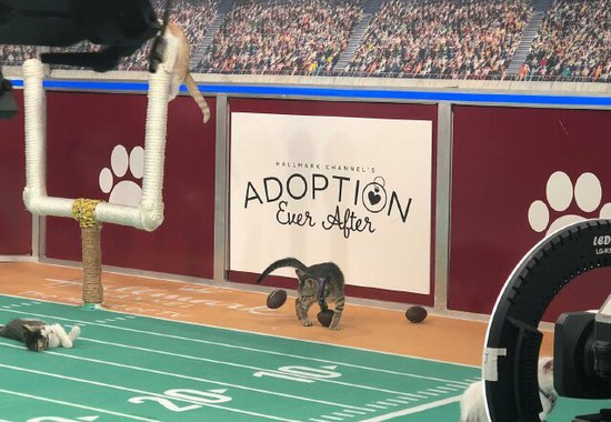 Last summer I reported live from the sidelines of Kitten Bowl VI, which will be telecast this Sunday at 2 p.m. on Hallmark Channel. Kitten Bowl VI is one of Hallmark's many programs this month that supports Adoption Ever After, the company's larger mission to educate audiences on pet adoption and inspire them to make a shelter pet part of the family. On Saturday, Kitten Bowl's brand-new companion program, Cat Bowl, will make its debut at 10 p.m. These two programs with a purpose comprise the country's largest pet adoption event, led by Hallmark and its partner North Shore Animal League. Participating shelters have increased a hundredfold since the launch of Kitten Bowl in 2014, and the franchise's success can be measured by the 25K pets adopted since that time.