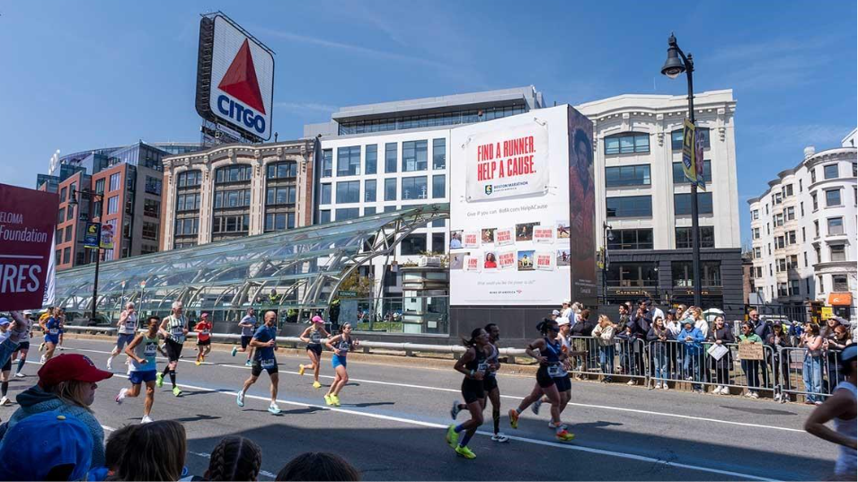 Alt: Bank of America Boston Marathon advertising on Kenmore Elevator