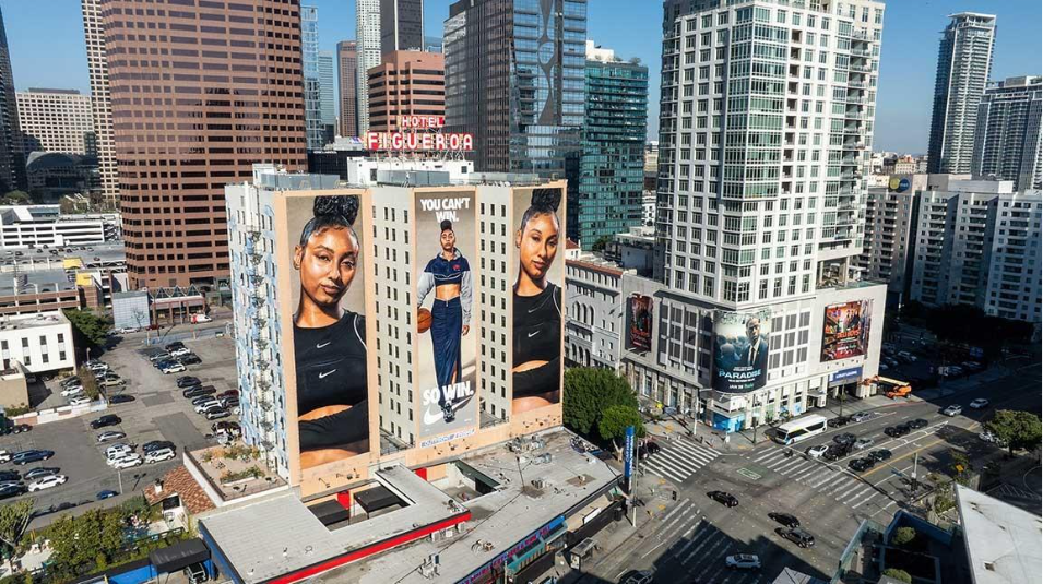 Alt: Nike wallscape on Hotel Figueroa in downtown Los Angeles