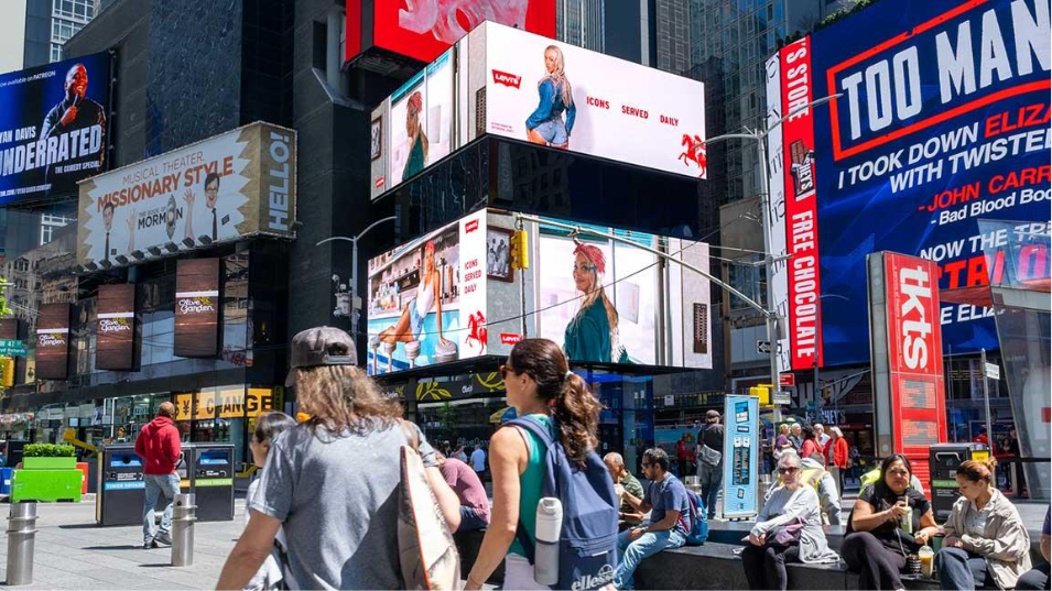 Alt: Levi’s DOOH advertisement on The Cube at 2 Times Square