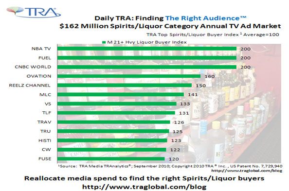 Recently, Martini & Rossi announced its first new television campaign in 25 years. Finding the right audience for Spirits/Liquor purchasers is easy with TRA’s Media TRAnalytics®. Heavy purchasers of Spirits and Liquor among Men 21 years of age and older have the highest concentration within the Networks listed below. Now, advertisers can move beyond traditional age/gender demographics to identify actual purchasers of their brands so they can increase product sales through television. So bring some holiday cheer to your media planning by improving your ROI with TRA.
