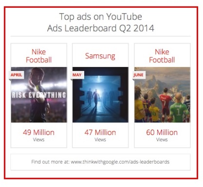 Get in the game: There is no better way to move the needle than starting to experiment, learning from experience and constantly improving. No team wins the World Cup without hard work and perseverance. Nike is just one of the many others who scored big. Adidas, Volkswagen and McDonald’s are others as you can read in this Forbes article. Beats by Dre and Samsung are others ads we captured in YouTube Ads Leaderboard. One thing that connects these brands is they are in the game.