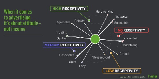 Advertising acceptance is demographically neutral. It isn’t so much age, gender or income, but rather personality that drives consumers’ attitudes towards advertising.