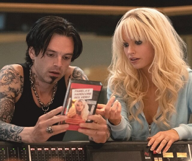 This story is truly brought to life by the stellar performances of Stan, James and Rogen. I've only known Stan for his performances as the MCU's Winter Soldier, but to see him step into Tommy's man-thong and truly embody the chaotic energy of that foul-mouthed rocker is nothing less than a trip. Same goes for James -- the way she literally transforms into Pam allows viewers to empathize with her real-life plight in a way my young mind hadn't considered or was even able to understand back when all this was happening for real. James and Stan nail the necessary chemistry that their real-life counterparts must have felt, and in doing so actually depict what was, at least until the tape came out, a surprisingly supportive and sweet relationship.
