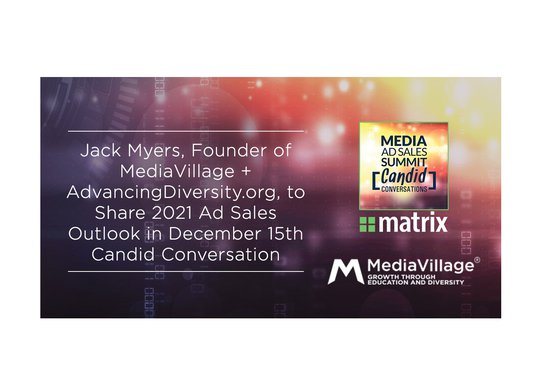 Jack Myers, Founder of MediaVillage + AdvancingDiversity.org, to Share 2021 Ad Sales Outlook in December 15th Candid Conversation