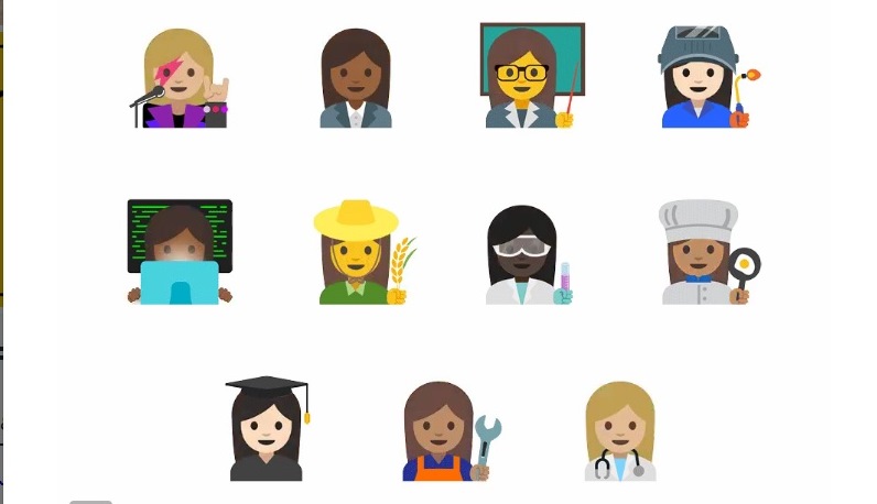 In a show of support for gender equality, Google has given their emoji a makeover, NY Mag reports. Instead of the Apple emoji, which tend to show women doing traditionally "feminine" activities, such as painting their nails or dancing, Android users will now be able to select from 11 emoji portraying women in various careers. Pre-existing emoji will also be made available in both male and female versions. This comes after Unicode, who designed the emoji for Apple (and now Google), received criticism for perpetuating outdated gender stereotypes – portraying men in all the professional and action emoji. Always' "Like a Girl" campaign called attention to the limitations stereotypical those emoji put on young girls. To better represent women in the real world, Google's new set includes a female engineer, doctor, scientist, and chef, to name a few. Check out them out below.