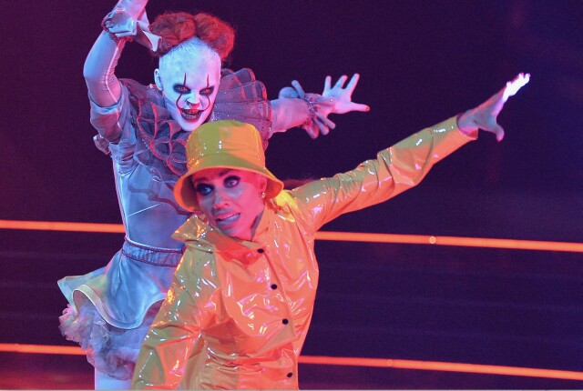 With Halloween just around the corner, ABC's Dancing with the Stars last night paid homage to some of the horror genre's most terrifying moments. While all the remaining contestants in week six of the competition conjured respectable scores, it was JoJo Siwa (pictured at top, left), together with partner Jenna Johnson (top right), who won the night with a spirited jazz routine inspired by the Stephen King book-turned-movie, It -- one that had all four judges singing her praises.