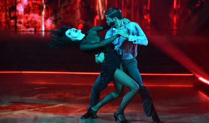 Rounding out the night, Amanda Kloots and Alan Bersten (pictured above) also received a respectable 38 for their Argentine Tango inspired by the movie Saw. Before the dance, Kloots revealed that the routine proved to be a challenge this week, and while the judge's critiques were mixed., the couple did execute some tricky footwork to perfection. "I'm really proud of our dance tonight," Kloots said after the show. "I really am. I don't think I've ever felt as connected to Alan on the dance floor as I did tonight. I love constructive criticism and we will always take it to heart and see how we can be better. Personally, I was so nervous about this dance all week long, and the fact that we went out there tonight and we feel as good as we do right now -- that's all that matters."