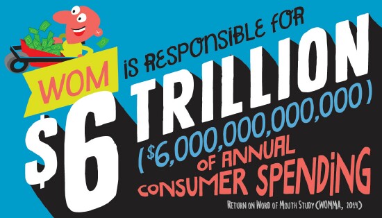 This month, the Word of Mouth Marketing Association (WOMMA), for which I am board chairman, unveiled third-party research that measures the total marketplace impact at $6 trillion dollars, and found that the value of a word of mouth impression is anywhere from 5 to 100+ times more valuable than a paid media impression.