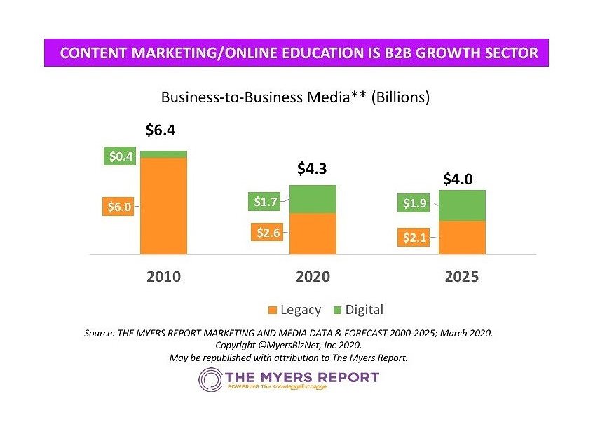 Each legacy B2B publishing dollar lost is being replaced by .46 digital cents gained. Every Content Marketing legacy dollar lost between 2010 and 2025 is being replaced by $3 in executive and corporate brand building. Where should trade media place their bets?