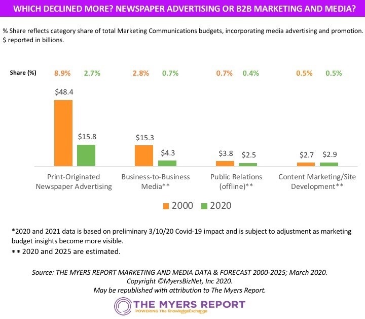 While newspaper advertising declined 68% since 2000, trade advertising has dropped an astounding 72%. Ad-light trade publications are a new norm, the conference business is cluttered, online news and audiences are cheap commodities, and trade press subscriptions are devalued. The COVID-19 economy is a disaster for already struggling B2B publishing companies that operate on thin margins.