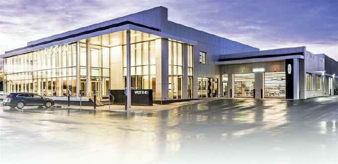 And then there are the new dedicated Vitrine dealerships (above), which have seen a 20 percent sales increase. "People are recognizing these beautiful new facilities," Sprague said. "Vitrine" is a French word for glass display cases, and in the new stand-alone showrooms (separate from Ford) there are big floor-to-ceiling windows, with the cars illuminated at night.