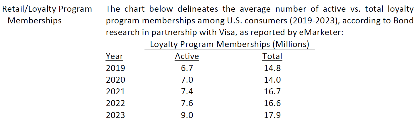 Further, according to the report US Retail Loyalty Programs 2024 from eMarketer, both total loyalty program memberships and active loyalty program memberships reached new highs in 2023.