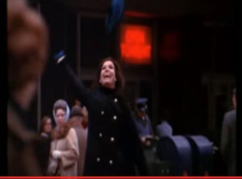 With the feminist movement that grew through the mid-1960s, television responded with series such as That Girl, an old-fashioned show about a single women living and working in the big city with the help of her boyfriend and her father, and The Mary Tyler Moore Show, a new-fashioned sitcom about a single woman making it on her own. The famous opening title sequence for the show closes with a scene of Mary walking in her new neighborhood and cheerfully flinging her Tam o' Shanter hat into the air, depicting freedom from her past and a new beginning, a scene Entertainment Weekly ranked as the second greatest moment of 1970s television. The theme song lyrics inspired a generation of women: